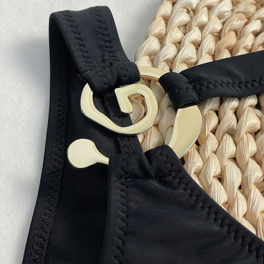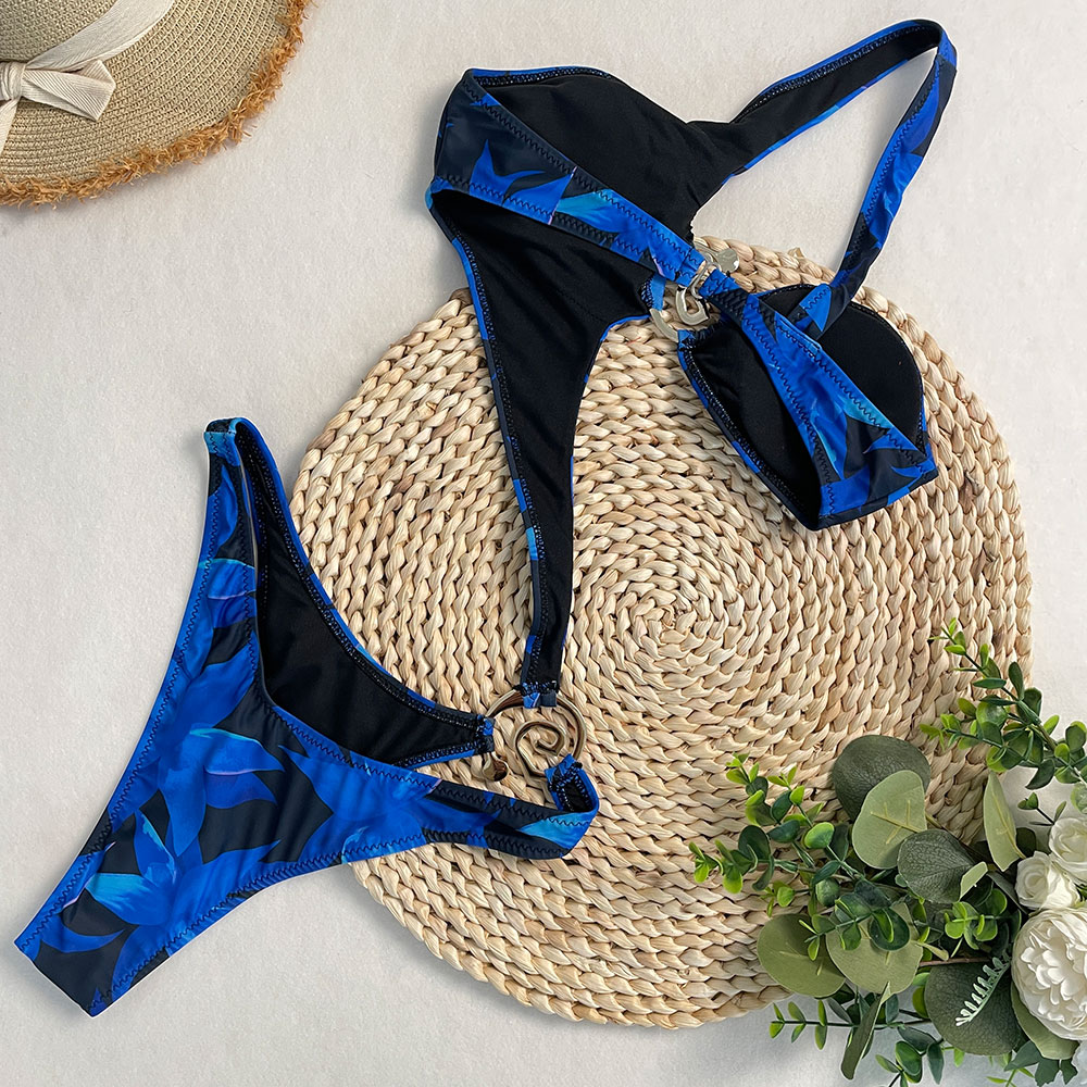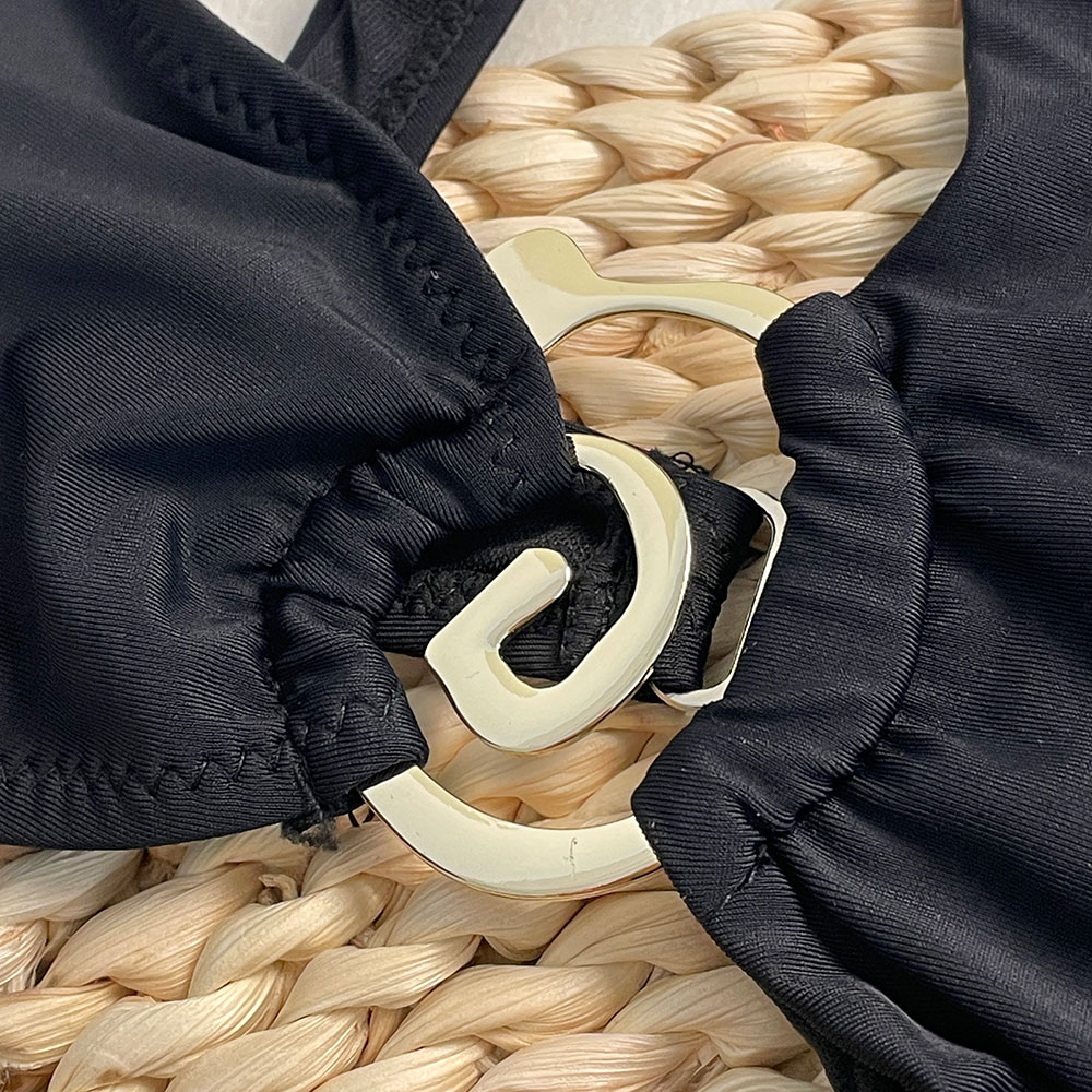 2025 Women’s One Piece Swimsuit Hollow Thong Metal Bikini Set Solid Halter Neck Bathing Suit Beachwear
