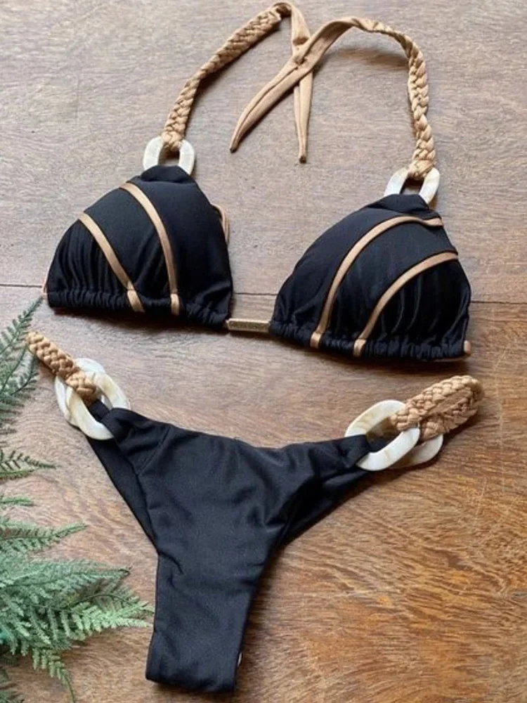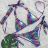 2025 Women’s Shiny Fabric Halter Bikini Diamonds There-Piece Swimwear with Hair Belt Bathing Suit Beachwear