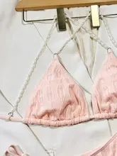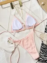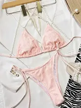 2025 Wrinkled Halter Pearls Bikini Female Swimsuit Women Swimwear Two-pieces Bikini Set Cross Back Bather Bathing Suit Swim Lady