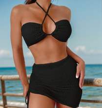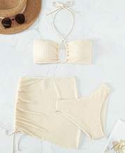 3 Piece Bikini Suit Beige Color Hang neck Swimwear Female Side Draw rope Skirt Women Beach suit