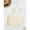 3 Piece Bikini Suit Beige Color Hang neck Swimwear Female Side Draw rope Skirt Women Beach suit