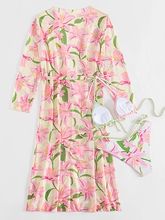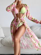 3 Piece Halter Triangle Bikini 2025 Women & Kimono Swimwear Female Floral Swimsuit Beachwear Bathers Bathing Swimming Swim Suit