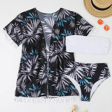 3 Piece Strapless Bikini 2025 Print Short Sleeve Women Swimwear Female Swimsuit Bathers Bathing Swimming Suit Beachwear Summer