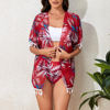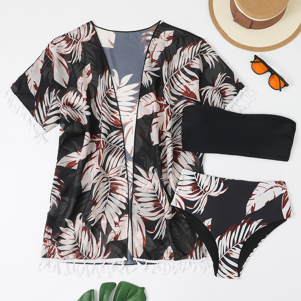 3 Piece Strapless Bikini 2025 Print Short Sleeve Women Swimwear Female Swimsuit Bathers Bathing Swimming Suit Beachwear Summer