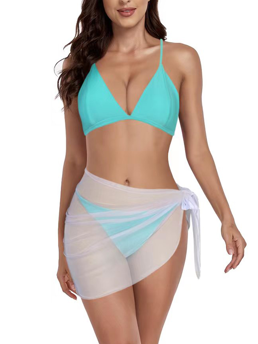 3 Piece Triangle Bikini With Skirt Deep V Swimsuit Solid Swimwear Women 2025 Bathers Bathing Swimming Swim Suit Female Beachwear