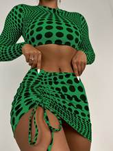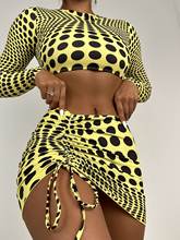 3 Pieces Bikini 2025 Women & Drawstring Beach Skirt Long Sleeve Swimwear Female Swimsuit Beachwear Bathing Swimming Suit Summer