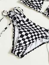 3 Pieces Checkered Tie Side Bikini 2025 Women With Cover Up Top Swimwear Female Swimsuit Beach Wear Bathing Swimming Suit Summer