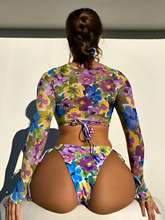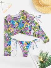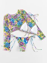 3 Pieces Floral Halter Triangle Bikinis 2025 Swimsuit With Cover Up Swimwear Female Bathing Suit Swimming Summer Beachwear