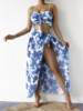 3 Pieces Floral Print Knot Front Bikinis 2025 Women Ruffle Swimwear Female High Waist Swimsuit With Beach Skirt Bathing Suit