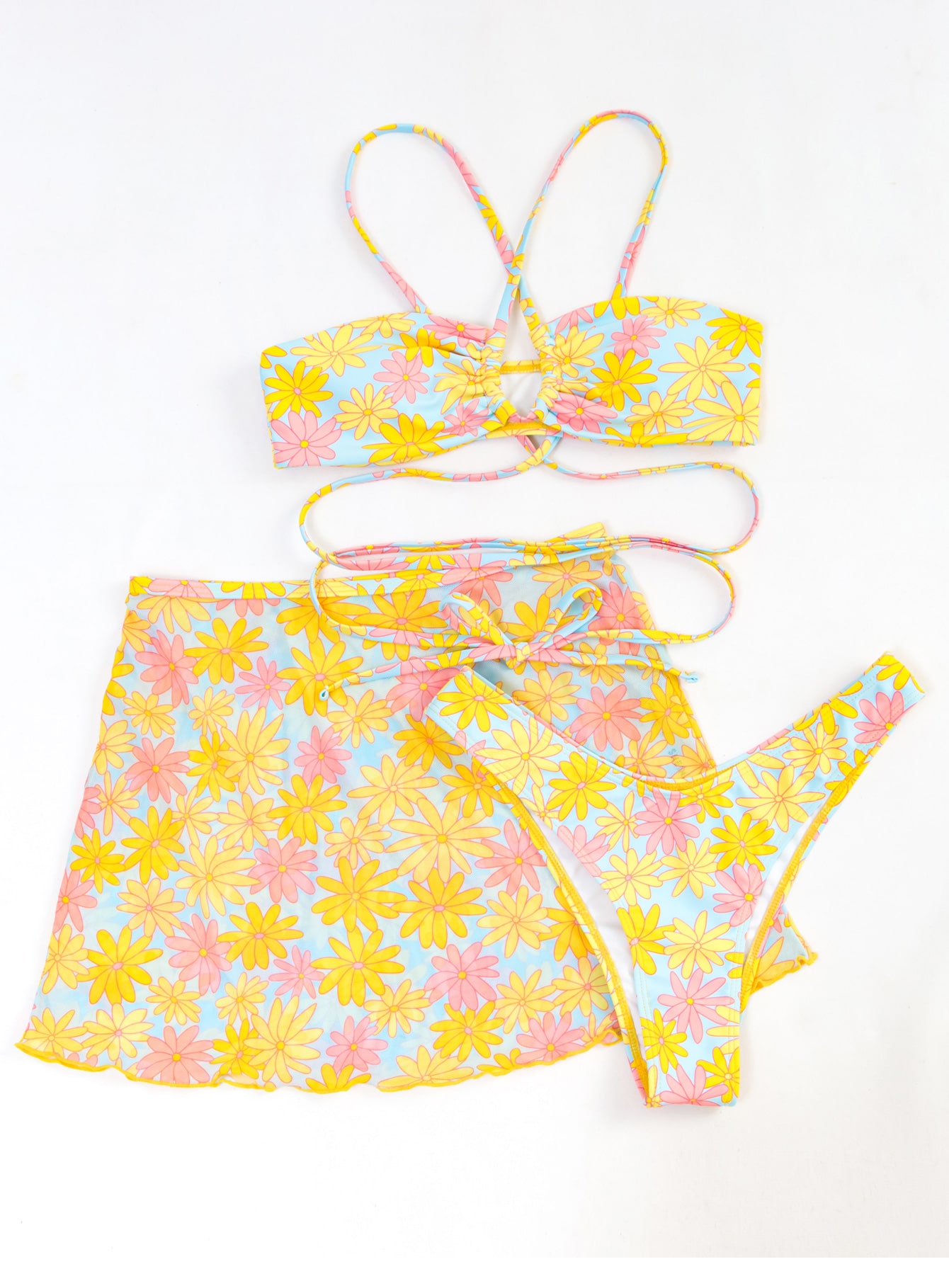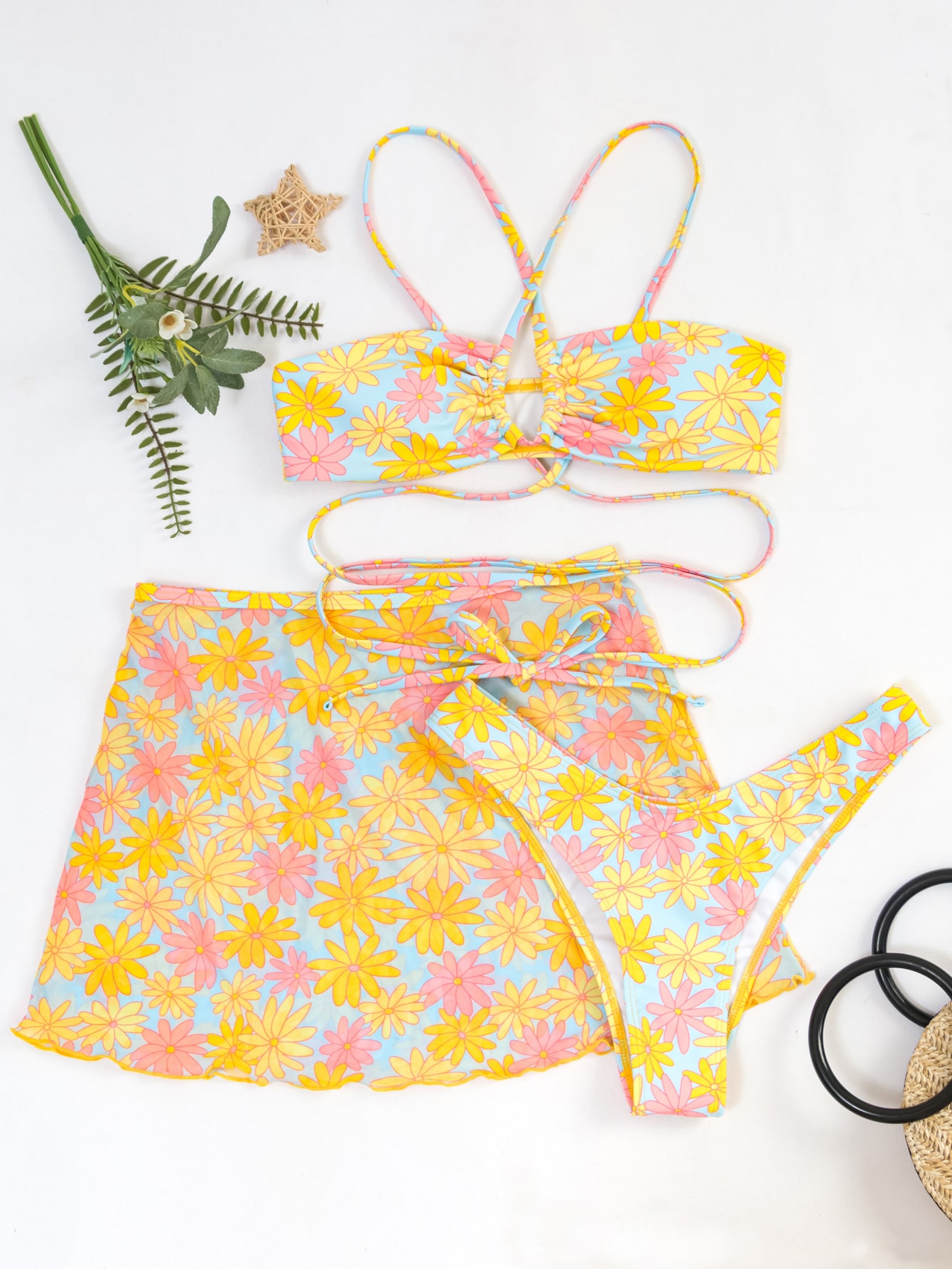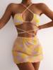 3 Pieces Floral Random Print Bikinis Swimsuit & Beach Skirt Swimwear Women 2025 Bathers Bathing Swimming Suit Female