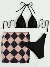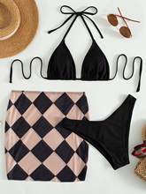 3 Pieces Geometric Print Triangle Bikini 2025 Women With Skirt Swimwear Female Swimsuit Beach Wear Bathing Swimming Suit Summer