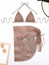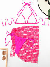 3 Pieces Halter String Thong Bikini 2025 Mesh Swimwear Female Swimsuit Women Bathers Bathing Swimming Suit Beachwear Summer