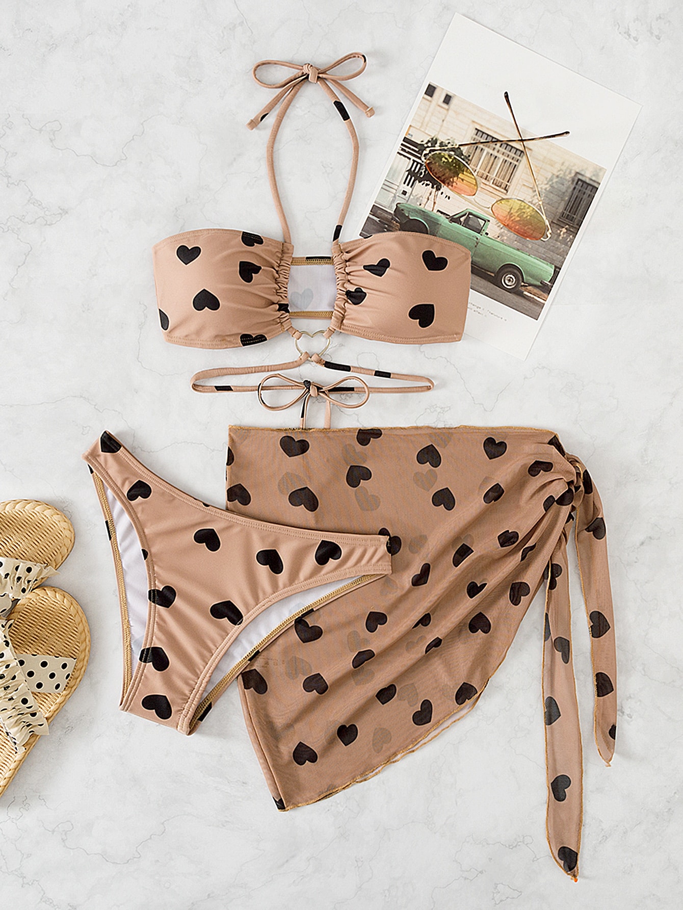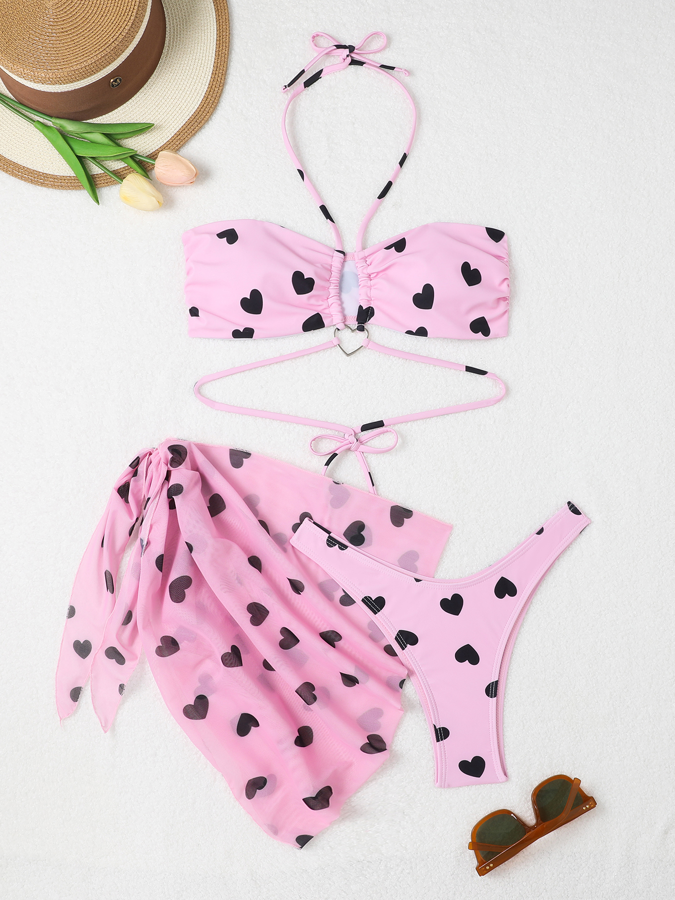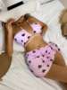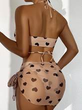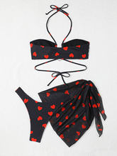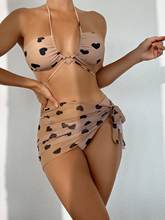 3 Pieces Heart Print Halter Bikini Swimsuit & Beach Skirt Swimwear Women 2025 Bathing Suit Female Swimming Summer Beachwear