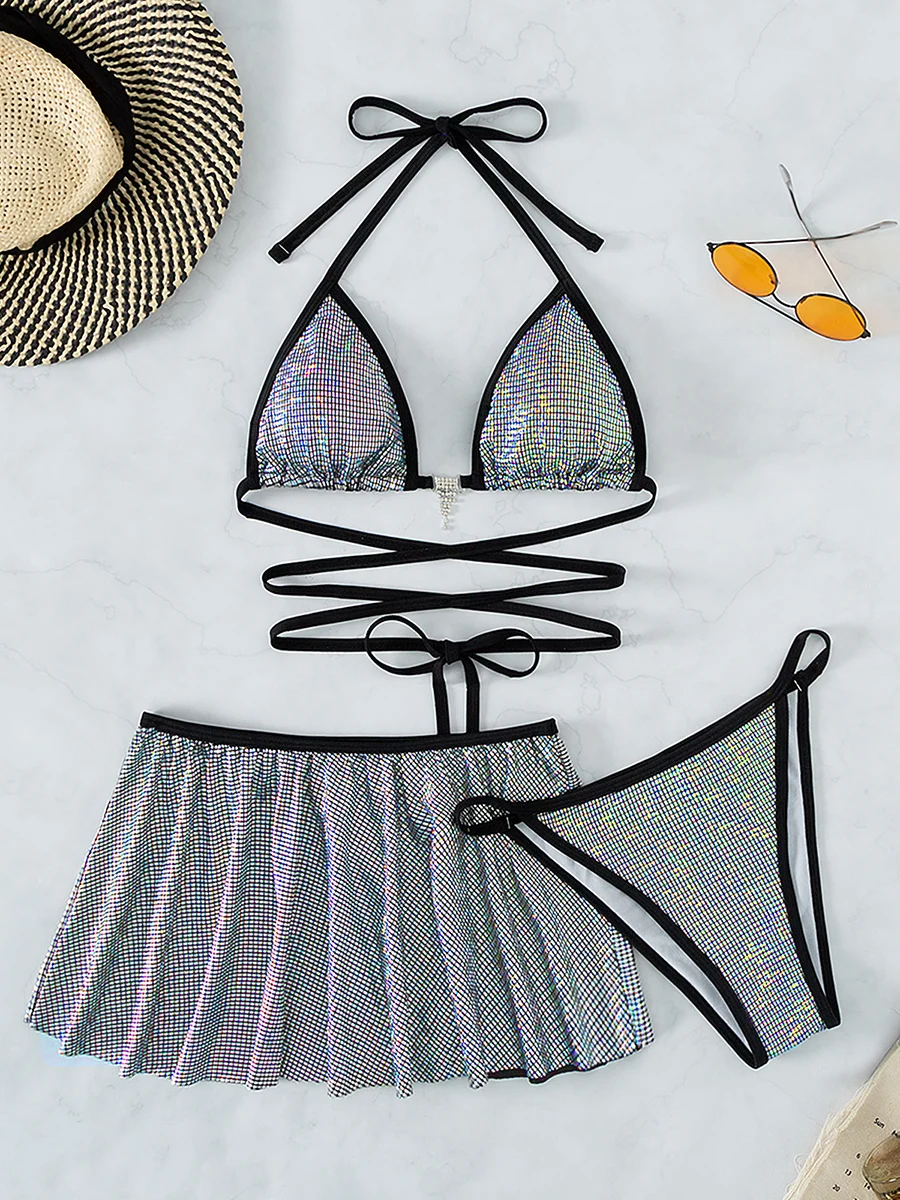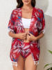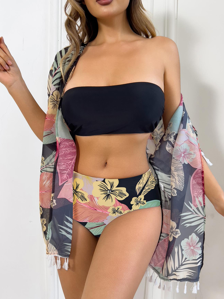 3 Pieces High Waist Bikini 2025 Bandeau Swimsuit Women & Ruffle Kimono Swimwear Female Bather Bathing Swimming Swim Suit