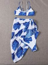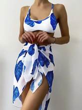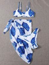 3 Pieces Leaf Print Bikinis 2025 Women & Cover Up Skirt Swimwear Female Swimsuit Beachwear Bathers Bathing Swimming Suit