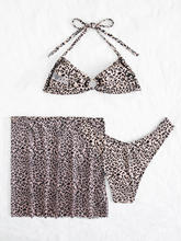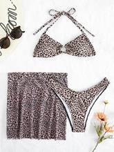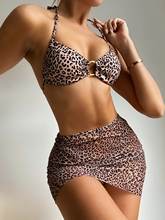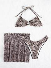 3 Pieces Leopard Ring Linked Halter Bikini 2025 Women & Beach Skirt Swimwear Female Swimsuit Beachwear Bathing Swimming Suit