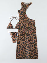 3 Pieces Leopard Triangle Halter String Bikini Hollow Out Swimsuit Women Swimwear Female Bathers Bathing Swimming Swim Suit