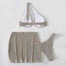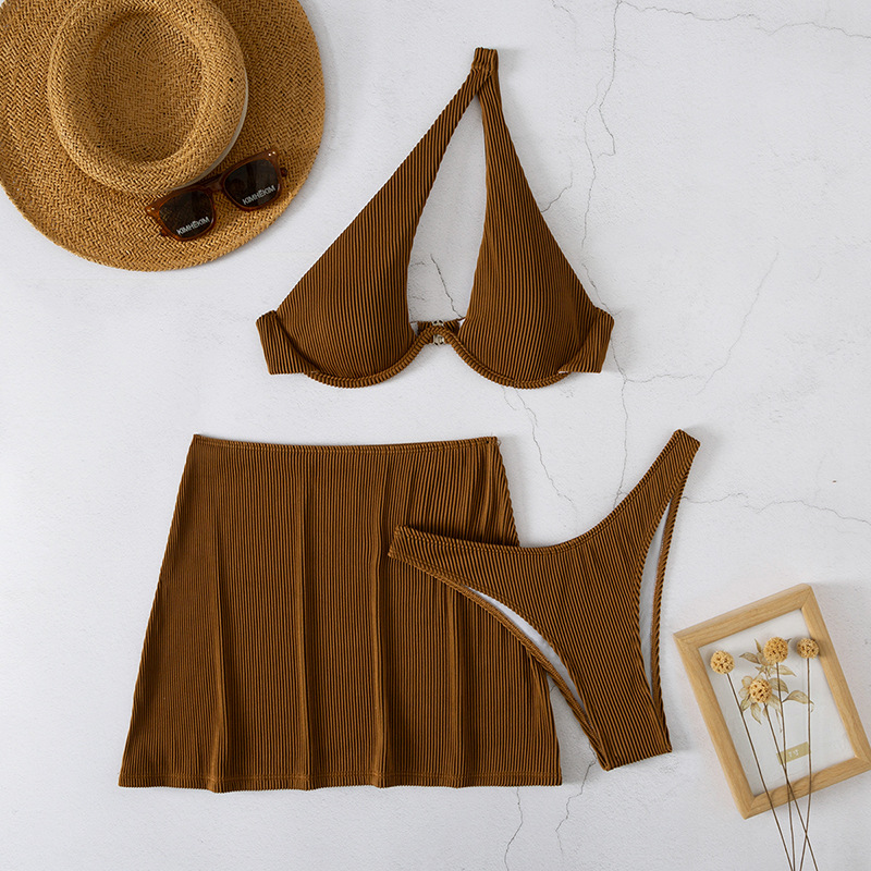 3 Pieces One Shoulder Bikinis 2025 Push Up Swimsuit & Beach Skirt Swimwear Women Bathing Swimming Suit Female Summer Beachwear