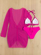 3 Pieces Plain Halter Triangle Bikini 2025 Women & Cover Up Swimwear Female Swimsuit Beachwear Bathing Swimming Suit Summer