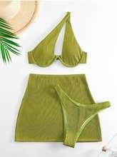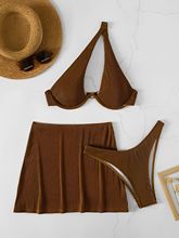 3 Pieces Ribb Push Up Bikini 2025 Women & Beach Skirt Swimsuit Swimwear Female Bathers Bathing Swimming Swim Suit
