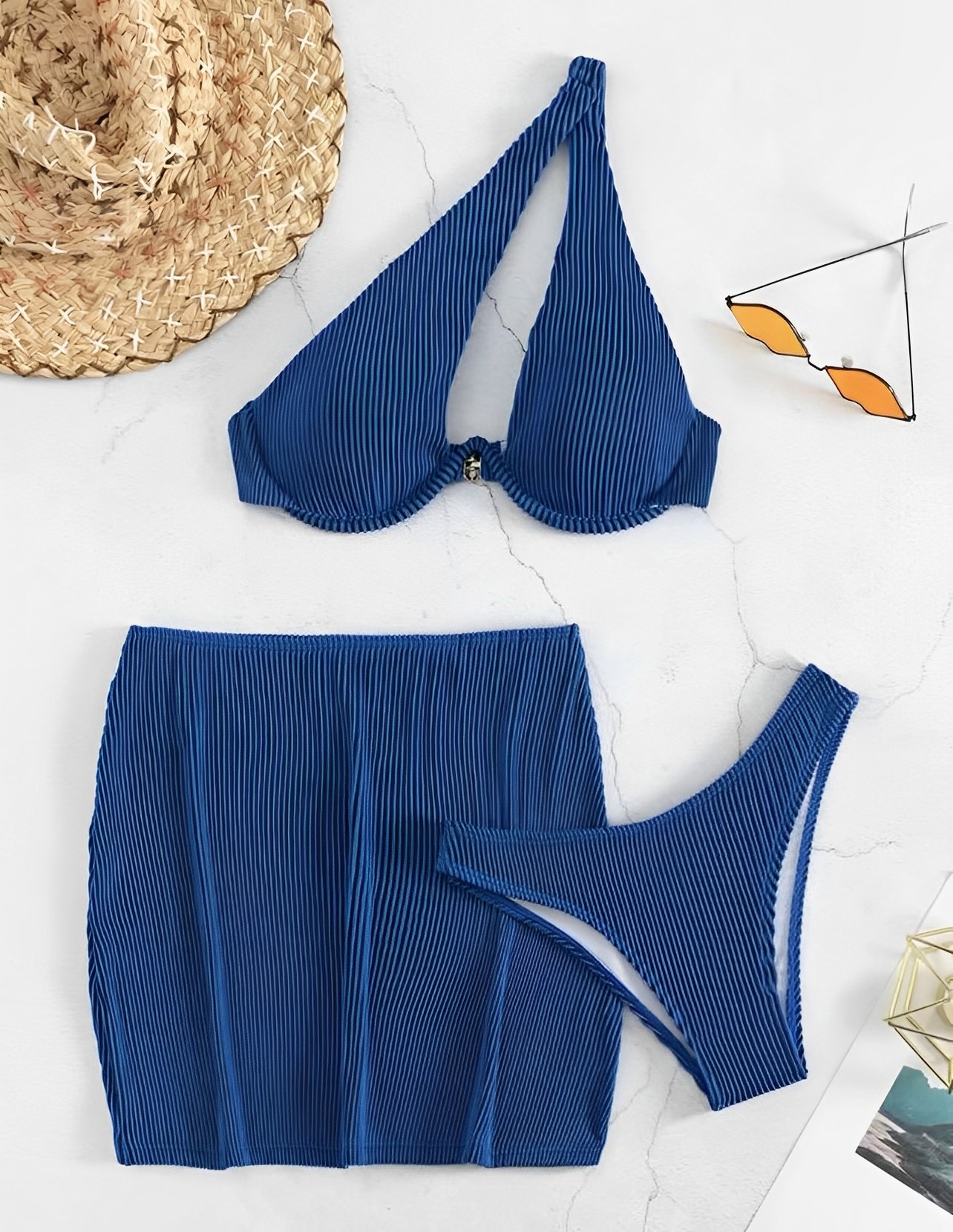 3 Pieces Ribb Push Up Bikini 2025 Women & Beach Skirt Swimsuit Swimwear Female Bathers Bathing Swimming Swim Suit