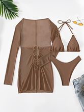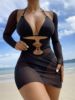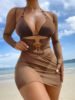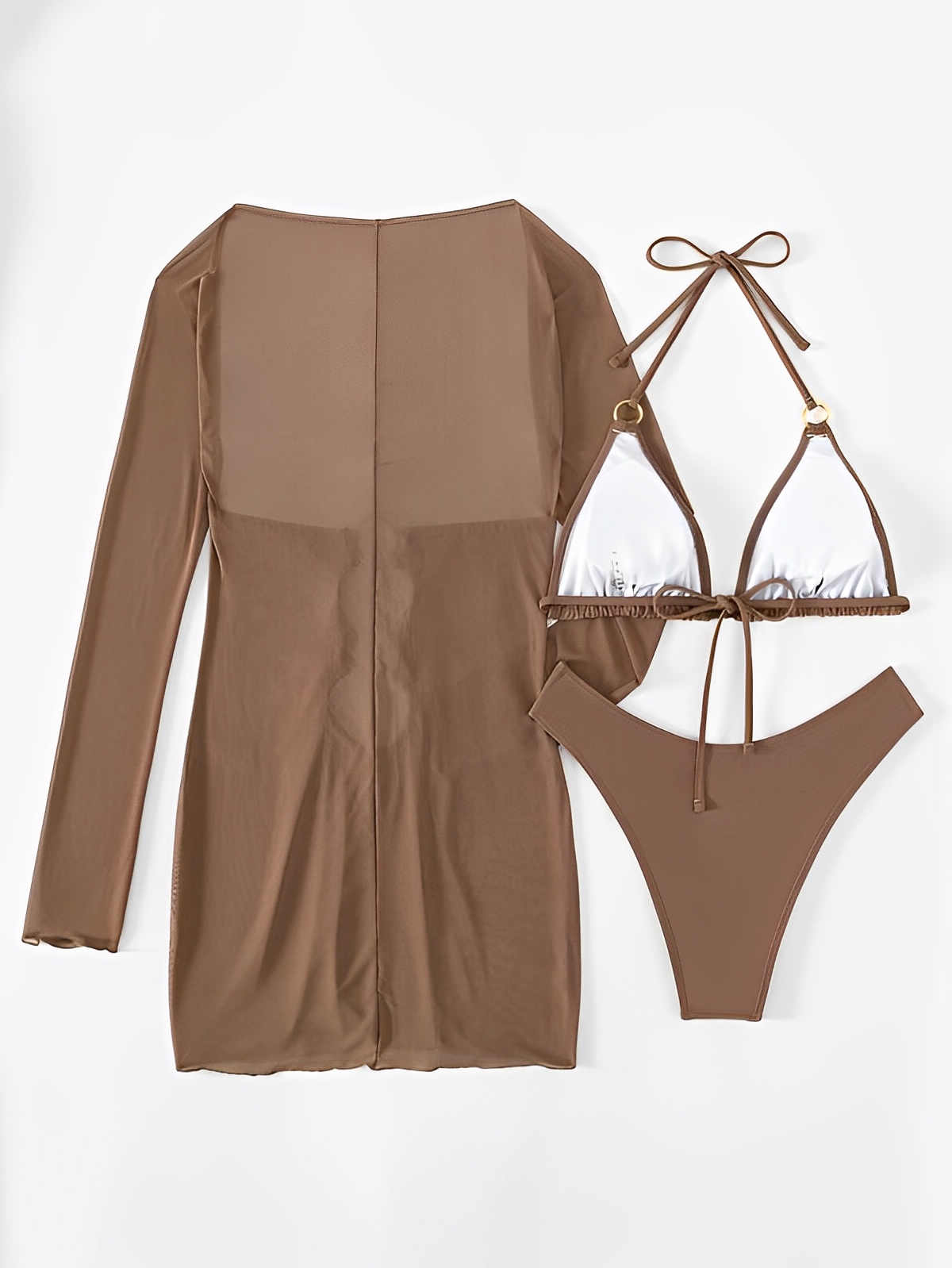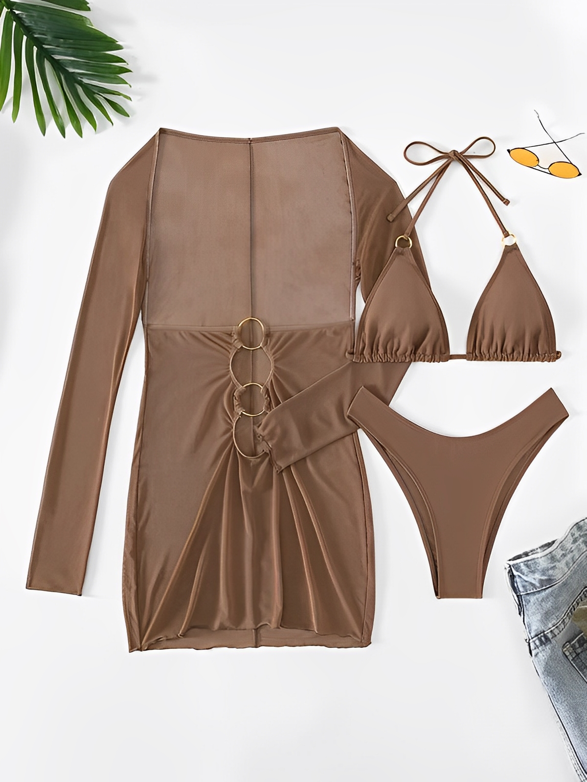 3 Pieces Ring Link Bikini 2025 Women Triangle Swimwear Female Halter Swimsuit Solid Beachwear Bathing Swimming Suit Summer