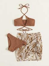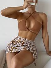 3 Pieces Solid Cross Bikini Swimsuit & Fluid Patter Beach Skirt Swimwear Women 2025 Bathing Swimming Suit Female Beachwear