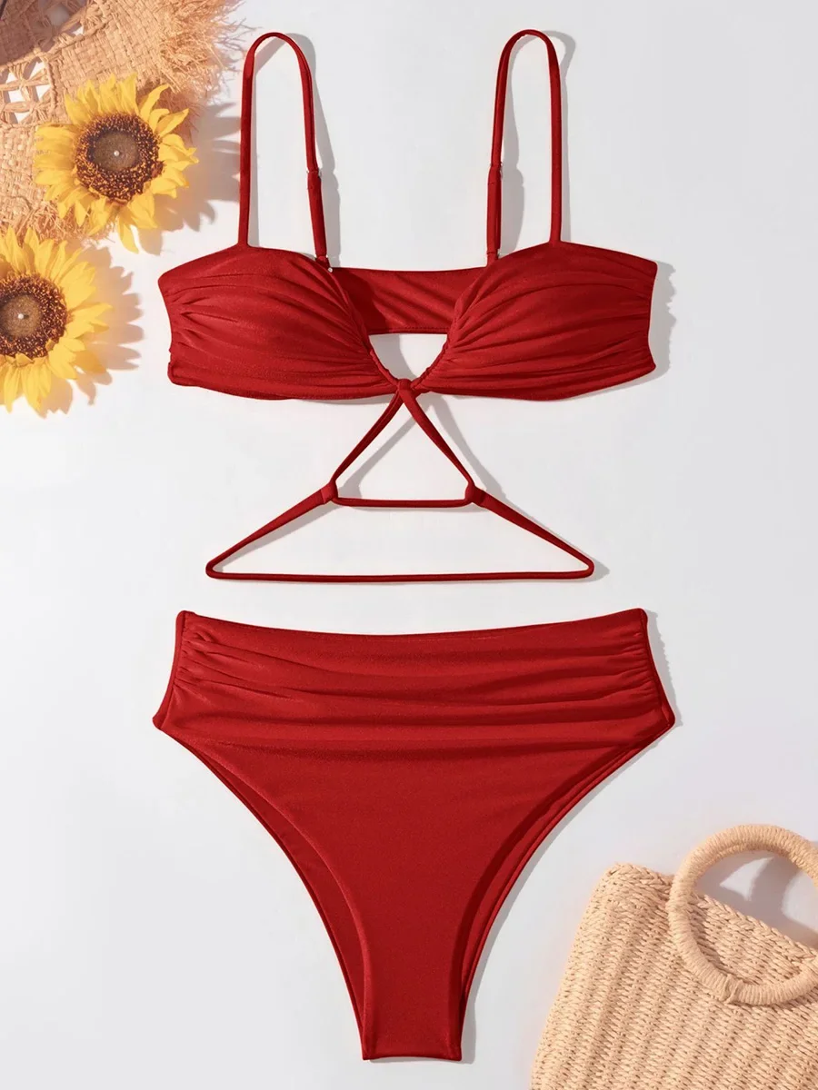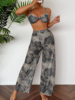 3 Pieces Strappy Bikini 2025 Women Printed Swimsuit Swimwear Female With Beach Pants Bathers Bathing Swimming Swim Suit