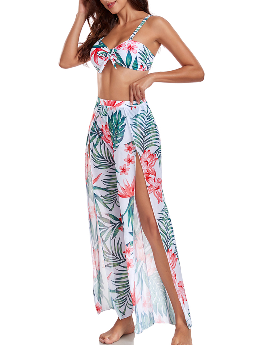 3 Pieces Strappy Bikinis 2025 Women Printed Swimsuit & Beach Dress High Waist Swimwear Female Bathing Swimming Swim Suit