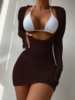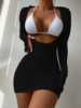 3 Pieces Thong Bikini 2025 Women With Cover Up String Swimwear Female Solid Swimsuit Beach Wear Bathing Swimming Suit Summer