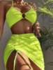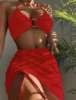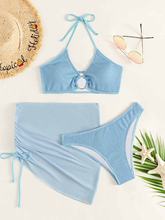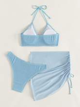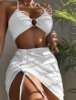 3 Pieces Thong Bikini 2025 Women With Skirt Ring Link Swimwear Female Halter Swimsuit Beachwear Bathing Swimming Suit Summer