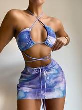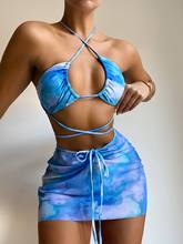 3 Pieces Tie Dye Bikini 2025 Women & Beach Skirt Swimwear Female String Swimsuit Beachwear Bathers Bathing Swimming Suit Summer