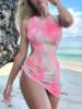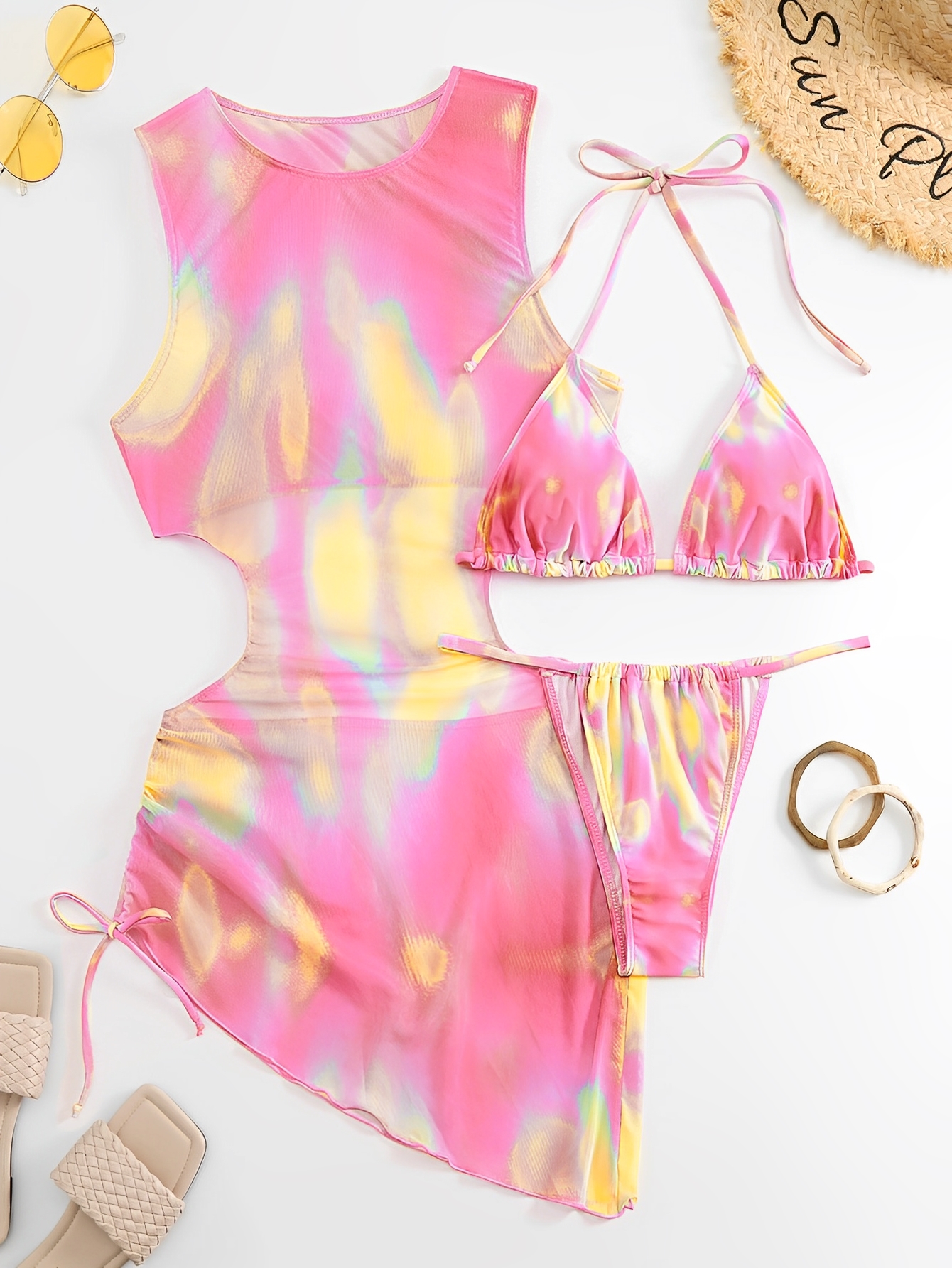 3 Pieces Tie Dye Bikini 2025 Women & Drawstring Cutout Cover Up Dress Swimsuit Swimwear Female Bathing Swimming Swim Suit