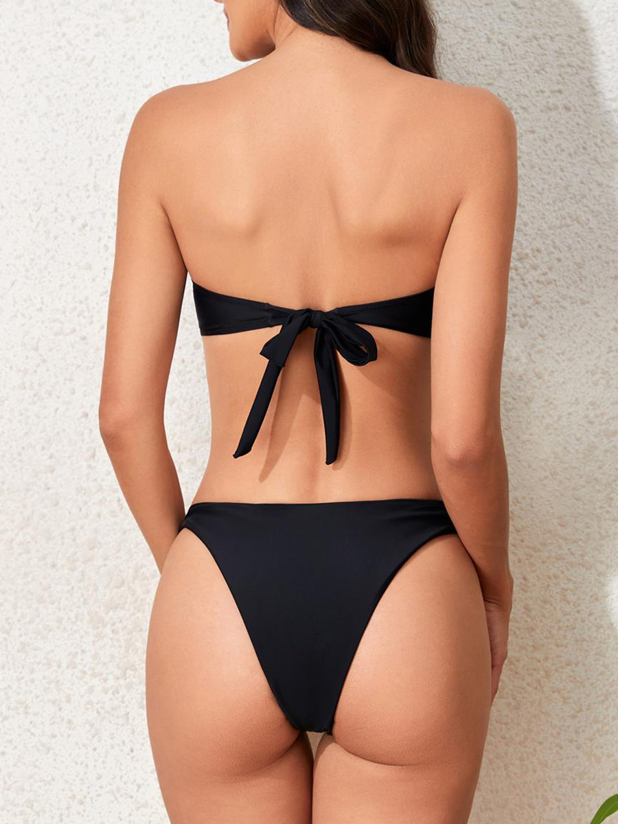 3D Floral Bandeau Bikini 2025 Thong Swimsuit Women Solid Swimwear Female Bathers Bathing Swimming Swim Suit Beachwear