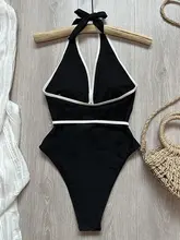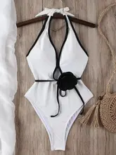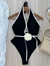 3D Flower Belt V Neck Splicing Halter Slim Women Swimwear One Piece Swimsuit Female Backless Monokini Bather Bathing Suit Swim