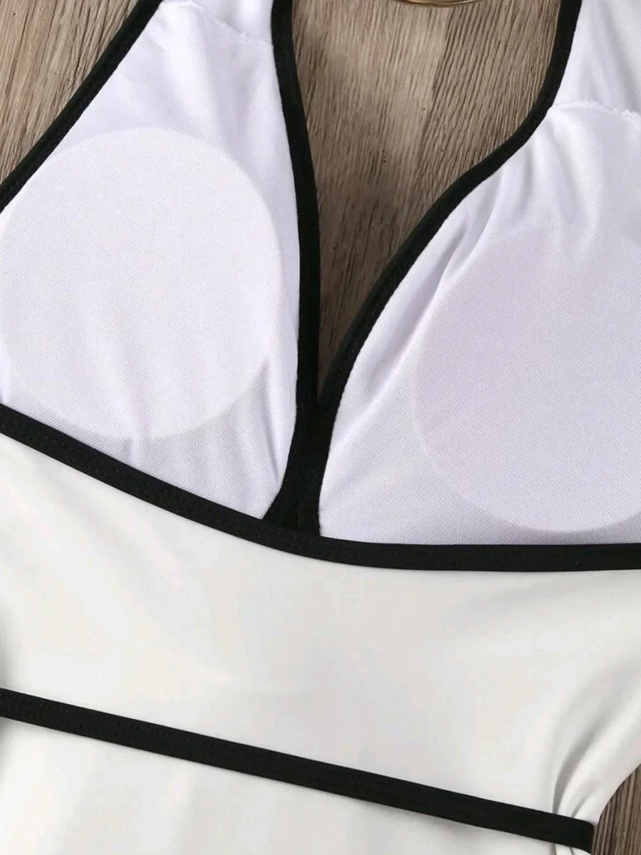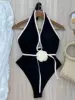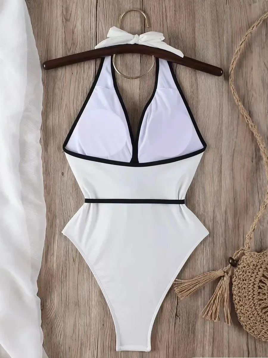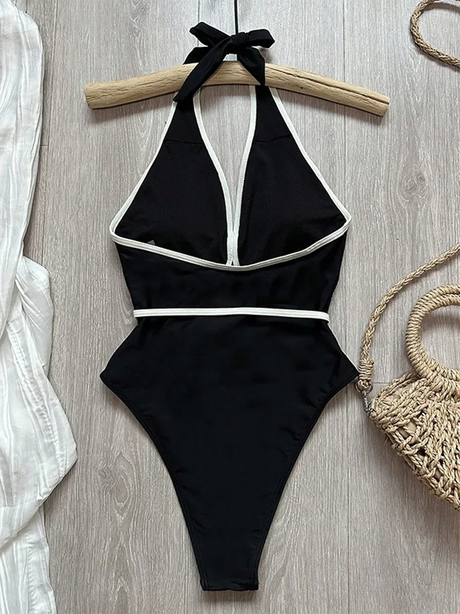 3D Flower Belt V Neck Splicing Halter Slim Women Swimwear One Piece Swimsuit Female Backless Monokini Bather Bathing Suit Swim