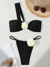 3D Flower One Shoulder Bikini Women Swimwear Female Bandeau Swimsuit Two-pieces Bikini Set High Cut Bathing Suit Swim Beach Wear