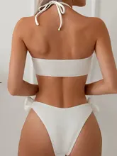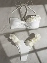 3D Flower Pleated Bikini 2025 Women Bikinis Bandeau Swimwear Female Swimsuit Two-pieces Bikini Set Halter Bathing Suit Swim Lady
