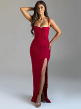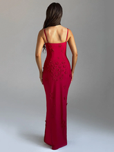 3D Flower Spaghetti Strap Maxi Dress Women Off-shoulder Backless Thigh High Split Evening Club Party Dress
