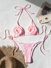 3D Flowers Halter Wrinkled Strappy Bikini Female Swimsuit Women Swimwear Two-pieces Bikini Set Bather Bathing Suit Swim Lady