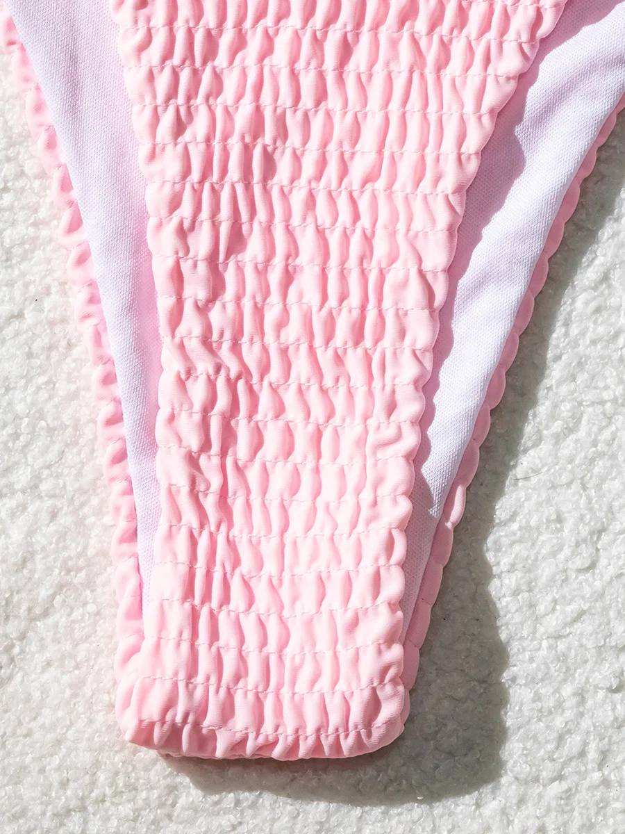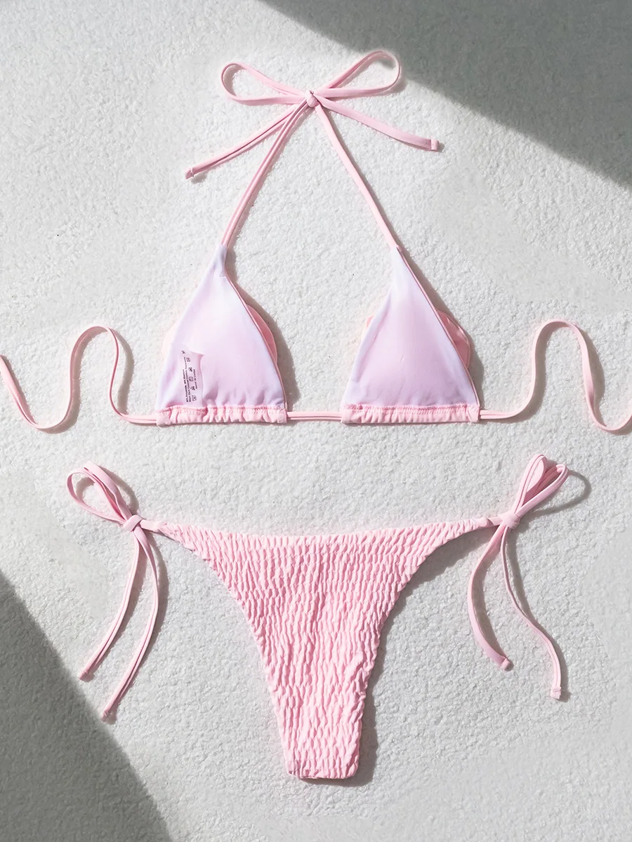 3D Flowers Halter Wrinkled Strappy Bikini Female Swimsuit Women Swimwear Two-pieces Bikini Set Bather Bathing Suit Swim Lady