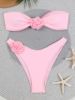 3D Rose Strapless Bikini 2025 Women Swimsuit Solid Swimwear Female Bathers Bathing Swimming Swim Suit Beachwear