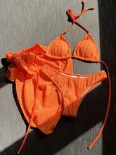 3pcs Sarong Beach Cover Up Skirt Wrinkled Bikini Women Swimwear Female Swimsuit Three-pieces Bikini Set Bathing Suit Swim Lady