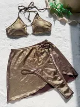 3PCS Skirt Halter Pearl Bikinis Hollow Out Bikini Women Swimwear Female Swimsuit Three-pieces Bikini Set Micro Bathing Suit Swim