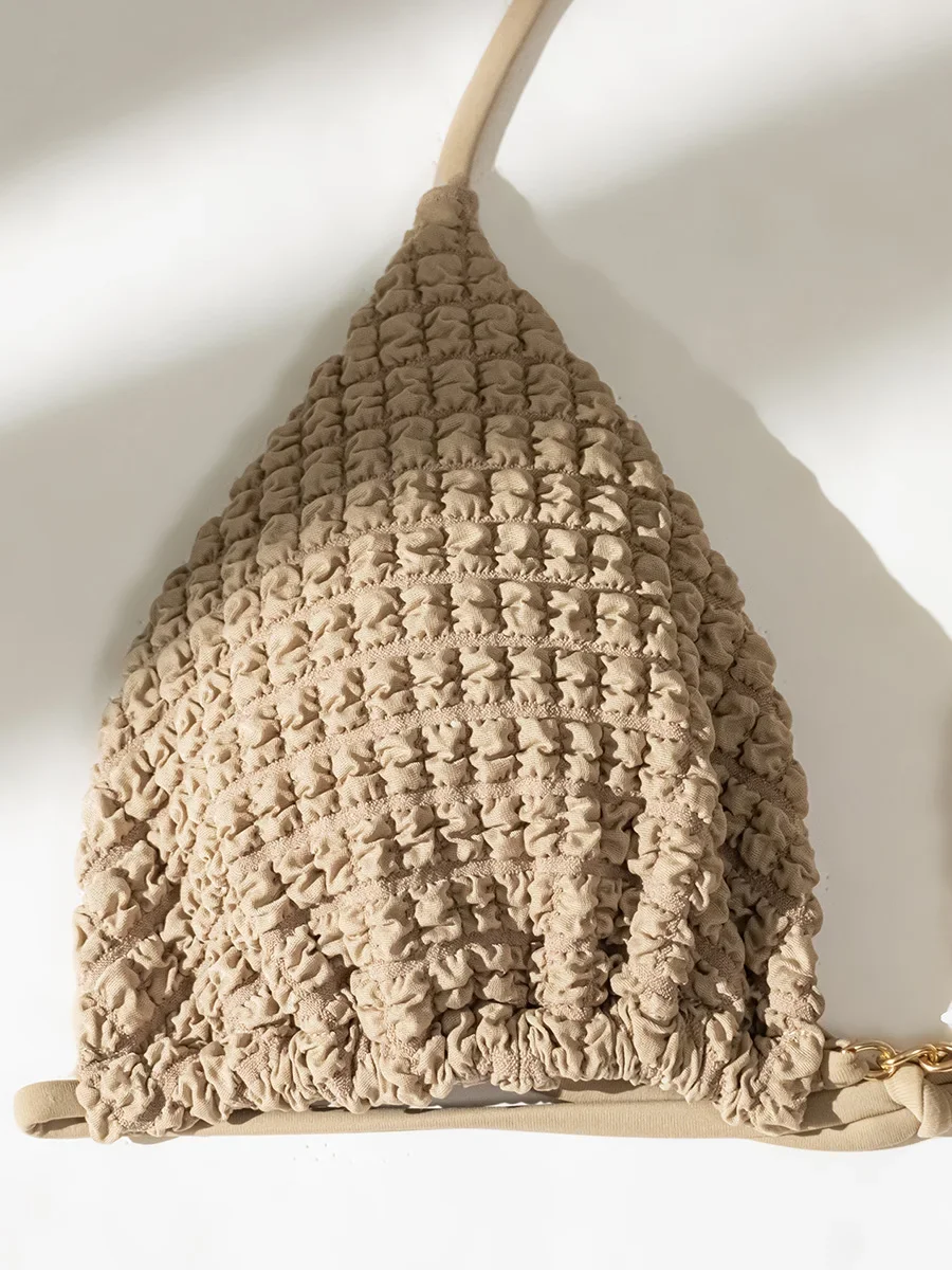 3PCS with Mesh Sarong Wrinkled Halter Bikini Female Swimsuit Women Swimwear Three-pieces Bikini Set Bathing Suit Swim Beach Wear