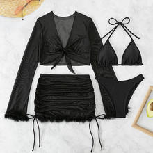 4 Pieces Halter Black Bikini Swimsuit & Cover Up Top & Beach Skirt Swimwear Women 2025 Bathing Swimming Swim Suit Beachwear