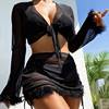 4 Pieces Halter Black Bikini Swimsuit & Cover Up Top & Beach Skirt Swimwear Women 2025 Bathing Swimming Swim Suit Beachwear