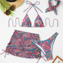 4 Pieces Halter String Bikini 2025 With Scarf Women Swimwear Female Swimsuit Bathers Bathing Swimming Suit Beachwear Summer