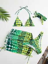 4 Pieces Random Dot Print Tie Side Halter Bikinis Swimsuit & Beach Skirt Swimwear Women 2025 Bathing Swimming Suit Female