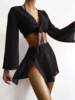 4 Pieces Thong Bikini 2025 Women With Top and Dress Black Swimwear Female Halter Swimsuit Beachwear Bathing Swimming Suit Summer